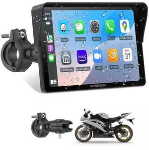 Wonsidary W722 for Motorcycle CarPlay & Android Auto,7" Waterproof Smart GPS Navigation System Screen,Car Play Moto with Light Sensor,Dual Bluetooth,Siri/G-Assist,EQ,USB/Hardwired Power Supply