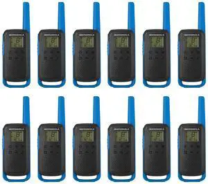 Motorola Solutions, Portable FRS, T270, Talkabout, Two-Way Radios, Rechargeable, 22 Channel, 25 Mile, Black W/Blue, 12 Pack