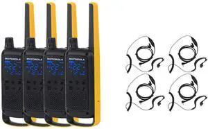 Motorola Talkabout T470 Two Way Radio 4-Pack Walkie Talkies Black/Yellow with PTT Curl Earpieces