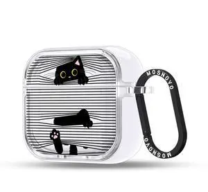 MOSNOVO Case for Airpods 4, Protective Clear Case with Shockproof Dual Layer Hard Luxe Metal Ring Designed for Airpods 4 Generation - Hidden Black Cat