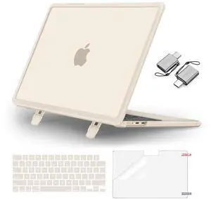 MOSISO Shock-Absorbing Hard Shell with Kickstand Compatible with MacBook Air 13 inch Case 2026-2022 M5 A3449 M4 A3240 M3 A3113 M2 A2681, 4 in 1 Kit Anti-Crack Cover for MacBook Air 13.6, Starlight