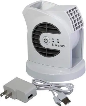 Lasko MyCool D300 Mini USB Desk Fan with 40in. USB Cable and Bonus AC Adapter Small Quiet Portable Personal 2-Speed Fans for Staying Cool at Home, Work, Office, Dorm, Car, and Travel, White
