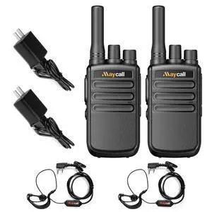 Maycall MC-558 2 Pack Walkie Talkies Two Way Radios for Adults with Earpieces 1200mAh One Click Frequency Matching Automatic Scanning HD Sound Quality for Cruise Hiking Hunting Skiing