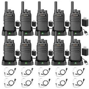Maycall MC-558 10 Pack Walkie Talkie Long Range Two Way Radio for Adults with Earpieces One Click Frequency Matching Automatic Scanning HD Sound Quality 1200mAh for Cruise Hiking Hunting Skiing