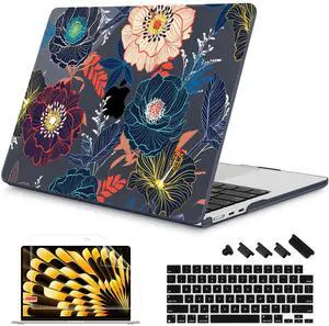 Mektron Designed for 2025/2024/2023 MacBook Air 15 INCH M4 A3241 /M3 A3114 /M2 A2941 Case, Printed Plastic Hard Shell Cover with 15.3" Liquid Retina Display Touch ID, Dahlia Flowers