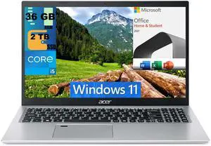Acer Aspire 5 15 Laptop, 15.6" FHD Display, Intel Core i5-1135G7 4 cores Processor, Iris Xe Graphics, 36GB DDR4 2TB PCIe SSD, Fingerprint Reader, Windows 11 Pro,Microsoft Office License