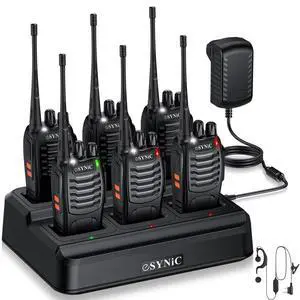 eSynic 6 Pack Walkie Talkies Kit-3 Miles Long Range Walky Talky-Compact Designed-Flashlight & VOX Hand Free Talking-1500mAh Rechargeable Battery- Rainproof-for Camping/Cruise Ships/Construction Sites