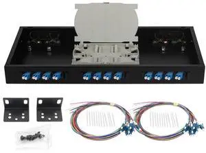 Duogalia LC-SM 12 Duplex 24 Port Rack Mount Enclosure Box with Splice Trays Singlemode LC-UPC Kit (Include Pigtail and Couplers) Fits for 19" Racks Cabinet