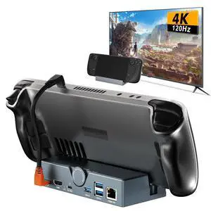 Steam Deck Dock - USB C Docking Station with Adjustable Stand, 100W PD Charging Dock with 4K@120Hz HDMI 2.1,Gigabit Ethernet,3 USB 3.0 Port, for Steam Deck OLED/ROG Ally/Legion Go S