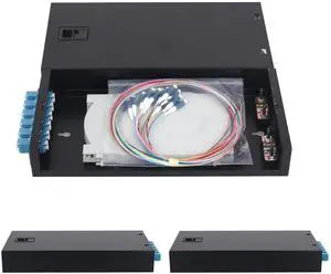 Xunsomten-12 Singlemode 12 Port SC-UPC Rack Mount Enclosure Box & Splice Trays Fiber Cables Kit, 12 Core LGX Loaded Patch Panel Box fits for 19" Racks Cabinet (Include Pigtail & Couplers)