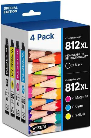 Wiseta 812XL Ink Cartridges Combo Pack High Yield Remanufactured Replacement for Epson 812XL T812XL Epson 812 T812 to use with WF-7820 WF-7840 WF-7310 EC-C7000 Printer with Scan, Copy(4 Pack, BCMY)