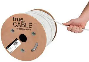 TRUE CABLE Cat6 Direct Burial Bulk Ethernet, Gel Filled, Unshielded, 500ft, White, Outdoor OSP Jacket, Waterproof, UV Resistant, 23AWG Solid Bare Copper, 550MHz, PoE++ (4PPoE)