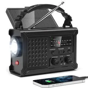 NOAA Emergency Weather Radio-12000mAh/44400mWh Radio Portable AM/FM with Solar/Hand Crank/USB Rechargeable Battery/SOS Alarm for Indoor/Outdoor Emergencies