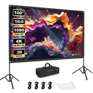 TOWOND Projector Screen with Stand,120 inches Indoor Projector Screen Outdoor Portable 16:9 4K HD Rear Front Projection Movie Screen with Carry Bag Wrinkle-Free Design for Backyard Theater