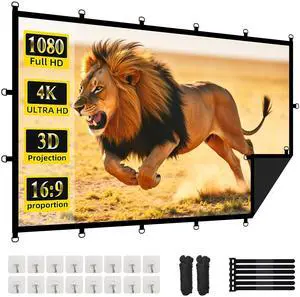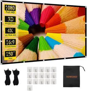 Projector Screen TOWOND 150 inch Projection Screen Indoor Outdoor Washable Anti-Crease 16:9 HD Rear Front Movies Screen for Home Theater Office
