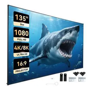 Fixed Frame Projector Screen Ultra-Thin 0.4" Aluminum Frame Wall Projector Screen 135 Inch, Effortless Setup ^^ Perfect for Home Theater, Office Presentations & Outdoor Movies Spring-Loaded Design