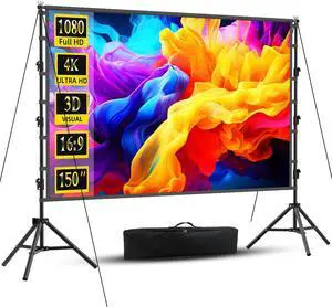 Projector Screen and Stand 150 inch Large Outdoor Projection Screen 16:9 HD 4K Portable Projection Movie Screen with Carry Bag Foldable Anti Crease Windproof Design for Home Theater Backyard Cinema