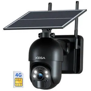 Xega 4G LTE Cellular Security Camera Outdoor Solar Camera Wireless Built-in SIM Card, 2K HD Color Night Vision PTZ 360 View, Smart PIR Motion Detection, 2-Way Talk, No WiFi, IP66