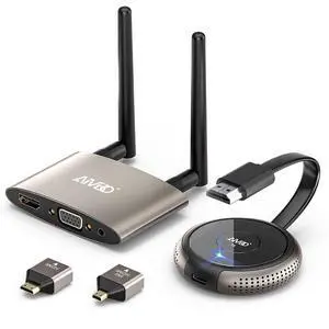 TIMBOOTECH HDMI Wireless Transmitter and Receiver 4K, Dual Screens HDMI & VGA Live Casting 5G Video/Audio for Laptop, Cable Box, Camera, Blu-ray, Phone, Netfix to Monitor, Projector, HDTV 165FT/50M