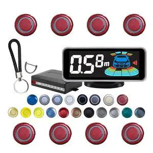 SANDETOUN Backup Parktronic System Car Auto Vehicle Reverse with 8 Parking Sensors kit, LCD Display, Distance Detection (Meter/Foot Switchable), Buzzer Alarm and Voice Prompt FunctionRed