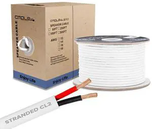 Cmple - 50FT 12AWG Speaker Wire Cable with 2 Conductor Speaker Cable (CCA) Copper Clad Aluminum CL2 Rated In-Wall Speaker Wire for Home Theater & Car Audio - 50 Feet, White