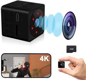Spy Camera WiFi or No WiFi Optional, 4K Mini Security Camera with 32GB Memory Card, Cameras for Home Security, 160 Wide-Angle, Night Vision, Motion Detection, for Indoor Outdoor
