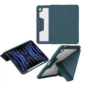ZKTUYU Case for iPad Pro 12.9 Inch (6th/5th/4th/3rd Generation 2022/2021/2020/2018) with Pencil Holder, Clear Transparent Back Shell Slim Stand Shockproof Tablet Cover, Auto Wake/Sleep, Blue