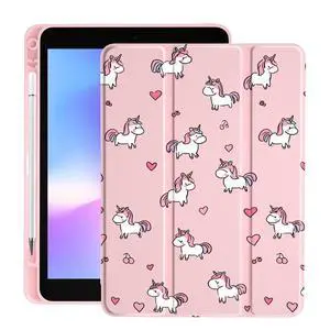 LuGeKe Heart Unicorn Case for iPad mini 6 Unique Case,Pencil Holder & Clear Acrylic Back & Trifold Stand Cover for Women