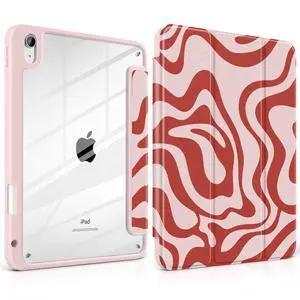 Batianda Case for New iPad (A16) 11 inch 2025 / iPad 10th 10.9-inch 2022 - Premium Pearlescent Silk Texture Smart Cover with Clear Back, Shockproof Folio Auto Sleep/Wake, Red Waves