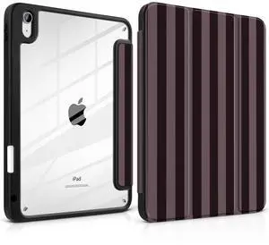 DONGKE Case for iPad (A16) 11th Generation 11 inch 2025 & iPad 10th Gen 10.9 inch 2022, [Built-in Pencil Holder] Clear Acrylic Back Trifold Stand Smart Cover, Auto Sleep/Wake, Brown Stripes