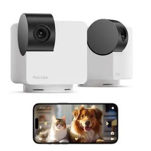 Petcube Pan-Tilt Cam 360 View The Pack of 2 Cameras 1080p HD Dome Camera, WiFi Pet & Home Security, Complete 360 Surveillance, Night Vision, AI Alerts