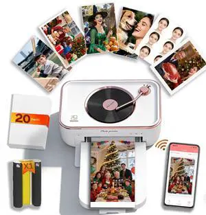 PRT CP6000 4x6 Photo Printer, Phone Printer with 20 Sheets & 1 Ribbon, Wireless Instant Picture Printers for iOS Android, Thermal Dye Sublimation, Home Use, Wi-Fi, AR Video, Fun App, White