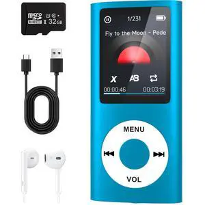 MP3 Player with Bluetooth 5.2,Portable Music Player with 32GB Memory Card, Stereo Earphone, Voice Recorder/Video/Photo Viewer/E-Book for Kids,Gift