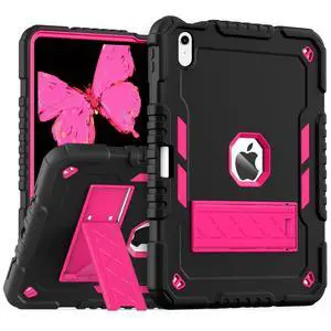 ZoneFoker for iPad (A16) Case 11th Generation 11 inch 2025 / iPad 10th Generation 10.9 inch 2022, Heavy Duty Durable i Pad 11/10 Gen Cover with Pencil Holder/Stand (Black+Pink)