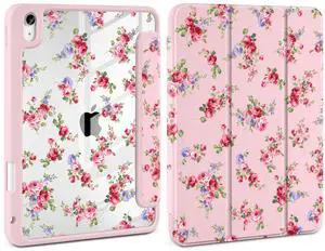 Loyrina Case for iPad Air 13 inch 2026 M4 2025 M3 2024 M2 Release Slim Lightweight Shockproof Cute Light Pink Cover with Clear Back TPU Edge Pencil Holder Trifold Stand Auto Wake Sleep, Elegant Rose