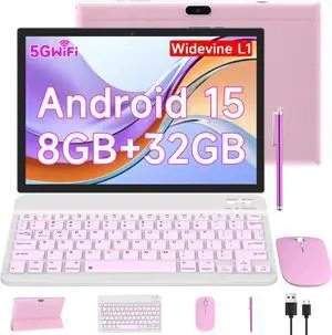 2025 Tablet 10 Inch Android 14 Tablets with Keyboard, 22GB RAM 128GB ROM, Widevine L1, Octa-Core, 8000mAh Battery, 5G Wifi, HD IPS Display, TF 1TB, GPS, Mouse, Case, Split Screen, Metal Body -Gold