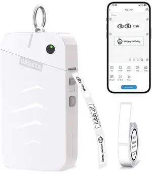 ORGSTA Label Maker Machine with Tape Bluetooth Portable Thermal Labelling Printer for School Home Office Organization, Wireless Mini Labeler S001 Label Machine with Label Sticker Maker, White