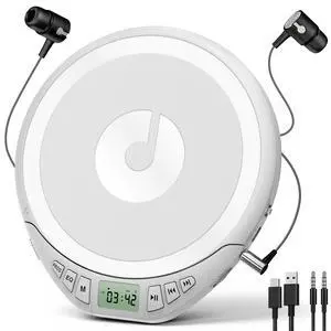 Portable CD Player with Headphones KOVCDVI CD Player Portable for Car with Anti-Skip & Shockproof,CD Discman with LCD Display,AUX Cable and Earphone for Sport Home Outdoor,White