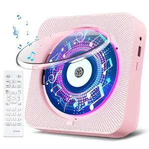 Gueray CD Player Portable Bluetooth Desktop CD Players with Speakers for Home Radio CD Player with Remote Control HiFi Speakers Dust Cover LED Screen Timer Supports AUX USB TF Card Playback Pink