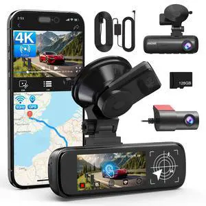 SPRLEAF 4K Dash Cam Front and Rear, Dash Camera for Cars, 3.16 Touch Screen,Radar 24/7 Parking Monitoring, GPS,5.8GHz Wi-Fi, OBD Plug and Play Power Cable,WDR,128GB Card Included