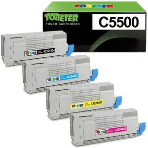 ToBeter C5500 Toner Replacement for Okidata OKI C5500 C5600 C5700 C5800 C5950 C5650dn C5650n C5800n Toner Cartridge, 4-Pack 43324404 43324403 43324402 43324401 Toner (5,000 Pages BK/C/M/Y)