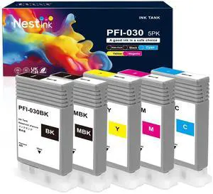 PFI-030 PFI030 Ink Cartridge 55-ml Set, PFI-030 PFI030 High Yield Cartridges, PFI-030MBK PFI-030BK PFI-030C PFI-030M PFI-030Y Replacement for imagePROGRAF TA-20 TA-30 TM-240 TM-340 Printer (5Pack)