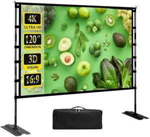 Outdoor Projector Screen with Stand, 120 inch Portable Projection kit 16:9 4K HD Wrinkle-Free Indoor Outdoor Movie Screen with Carry Bag for Home Theater and Backyard Movie Night