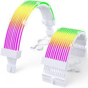 Sirlyr RGB PSU Cables Set with Lighting Panels and 24 Pin Motherboard,2 8 Pin GPU PC Power Supply Extension Cable Mod - Upgrade 120 LEDs 6 Light Strips with Remote ARGB Control