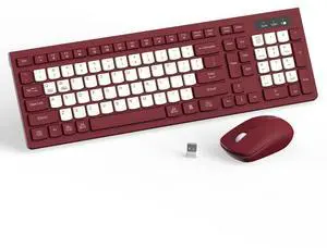 Wireless Keyboard and Mouse Combo, Full-Sized Wireless Keyboard and Adjustable DPI Mouse, 2.4GHz USB Receiver, Keyboard and Mouse for PC, Windows, Desktop, Laptop (Wine Red-B)