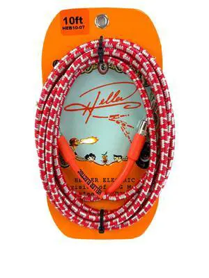 Heller Electric Braid-Matrix Guitar Cable, 10ft, Red/Silver Tweed, Electric Guitar & Bass, 1/4" Straight-Straight, 20AWG OFC, 99% Shielded, Professional