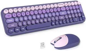 KNOWSQT Wireless Keyboard and Mouse Combo - Purple-Gradient 2.4G Full-Size Typewriter Cute Colorful Keyboards - USB Plug and Play, for Windows, Laptop, Computer, PC, Desktop