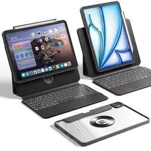 Uminy Keyboard Case for iPad Air 13"(M3 2025/M2 2024)& Pro 12.9" (6th/5th/4th/3rd Gen)- Height Adjustable, Multi-Touch Trackpad, 360 Rotatable, Magnetic Detachable Clear Back,7-Color Backlit, Black