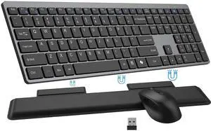 Wireless Keyboard and Mouse Combo, Full Size Silent Ultra Thin Keyboard with Magnetic Wrist Rest, Optical Mouse, 2.4G Lag-Free Cordless Mice Keyboard Set for Computer, Mac, Laptop, PC, Windows