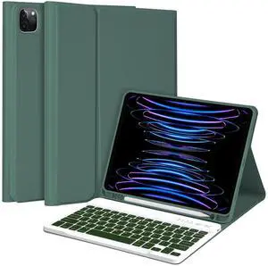 MMK for iPad Air 11 inch Case with Keyboard (M3 2025 / M2 2024) & iPad Air 5/4th Gen (2020/2022) & iPad Pro 11" 2018-2022, Detachable Bluetooth Keyboard Cover with Pencil Holder ^^ Deep Green